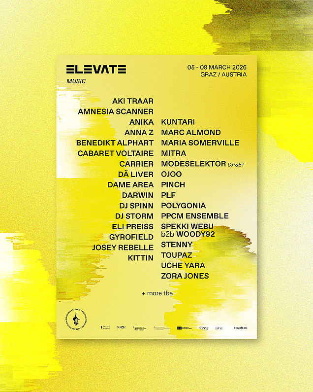 The music programme of Elevate 2026, as every year, weaves together a multitude of aesthetic currents into a musical melting pot: from progressive club sounds to avant-pop and melancholic R&B, all the way to immersive performances and ecstatic improvisation. Between solo acts, band projects, and DJ sets, a panorama of current musical developments unfolds.
