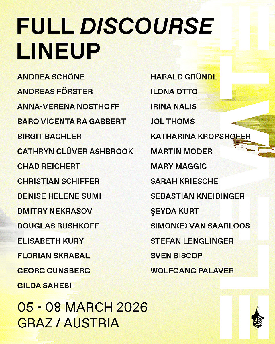 The discourse programme in the Heimatsaal of the Graz Museum of Folk Life and Folk Art is free to attend. All panels, discussions and lectures will be livestreamed on elevate.at and Youtube. Workshops and film screenings are excluded.