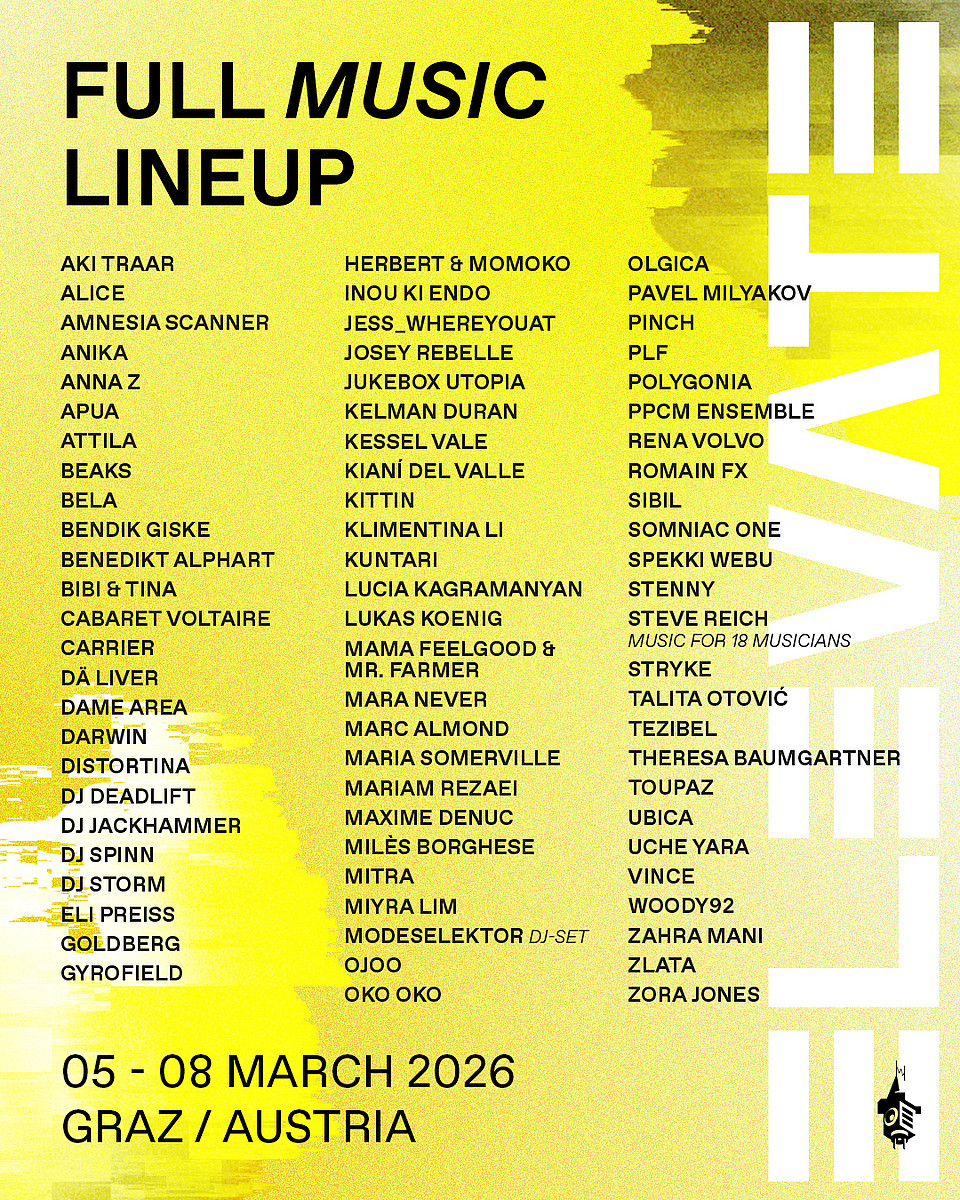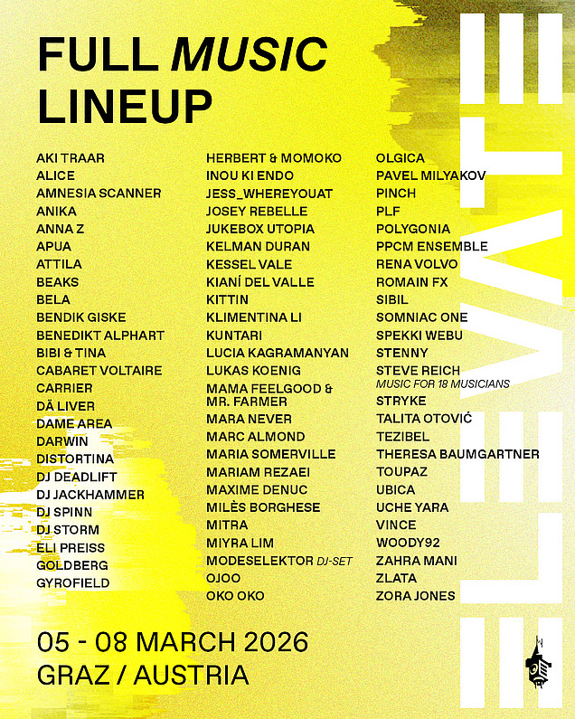 Tickets for all categories are available via NTRY, oeticket and Resident Advisor. The festival passes are now sold out. Further information can be found in our ticket shop.