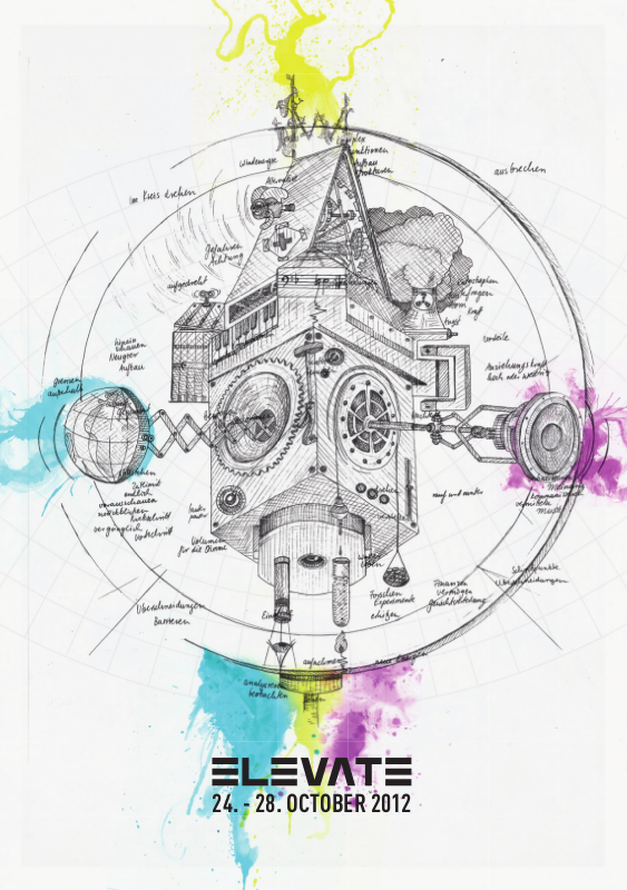 2012 - The Apocalypse was placed as the central theme of the Elevate Festival in the form of a question: Are we going to achieve the much-needed shift towards solidarity-based economies and lifestyles that respect inherent ecological limits? Or will major disasters be necessary to bring about fundamental changes?