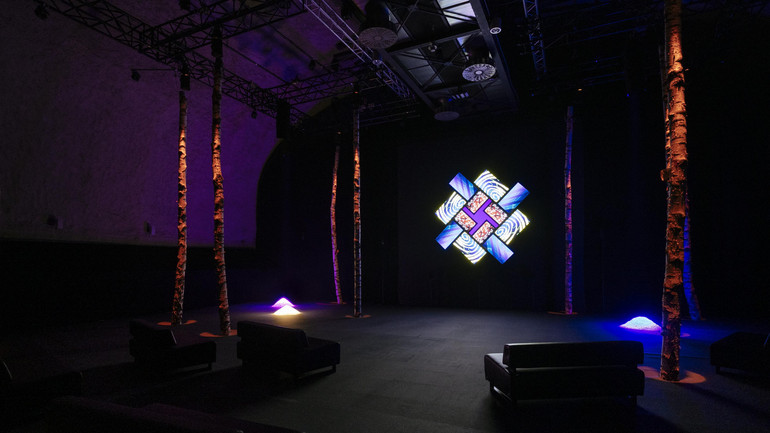 For the Elevate Festival 2021, a specific, room-scale 3D sound adaptation of 77 Million Paintings has been developed, incorporating the Dom im Berg's Ambisonic sound system installed in 2019 and can be be visited until August 28.