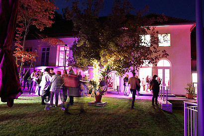 The neighbouring garden at the foot of the Schloßberg expands the possibilities of the Heimatsaal and offers an inviting outdoor space for breaks and networking during the festival.