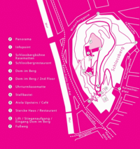 - Im Infopoint gibt es elevate-Plakate, -Taschen, -Sticker und –Buttons zu kaufen und Infomaterial zur Stadt Graz mit Stadtplänen sowie elevate-Programmhefte