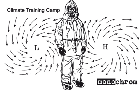 Die Kunstgruppe monochrom möchte in einem Workshop (plus Lectures) das Wissen zum Bau von Klimatrainingskabinen vermitteln, in denen Sie ihre ganz persönliche Anpassungsfähigkeit an kommende Extremwetterlagen schon heute erwerben können. Erfolg in Beruf und bei der GeschlechtspartnerInnen-Wahl garantiert! In unseren Klimakabinen "Sandsturm" und "Schneesturm" können Sie außerdem in das Klima von morgen heute schon reinschnuppern und wertvolle Erfahrungen sammeln. Es gibt viel auszuhalten, fangen wir gleich an.