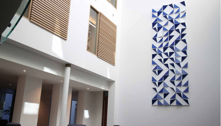 Das Auftragswerk „OrigamiRhombi“ wird während des Elevate Festivals im Foyer des Grazer Lendhotels aufgebaut. Ab 04.03 ist sie als Teil der umfangreichen Sammlung des Hotels zu besichtigen.