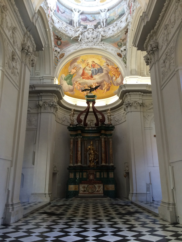 Ein kaiserlicher Ruheort gleich neben dem Grazer Dom. Türkisfarbene Dachkuppeln heben sich über dem Mausoleum vom strahlend blauen Himmel ab und formen zusammen mit Dom und Katharinenkirche ein großartiges Stadtbild. Man fühlt sich sogleich in den Süden versetzt, da das Ensemble den Besucher mit nahezu florentinisch anmutendem Flair verzaubert. Kaiser Ferdinand II. ließ hier in Graz von seinem Hofmaler Giovanni Pietro de Pomis das beeindruckende Grabmal planen.